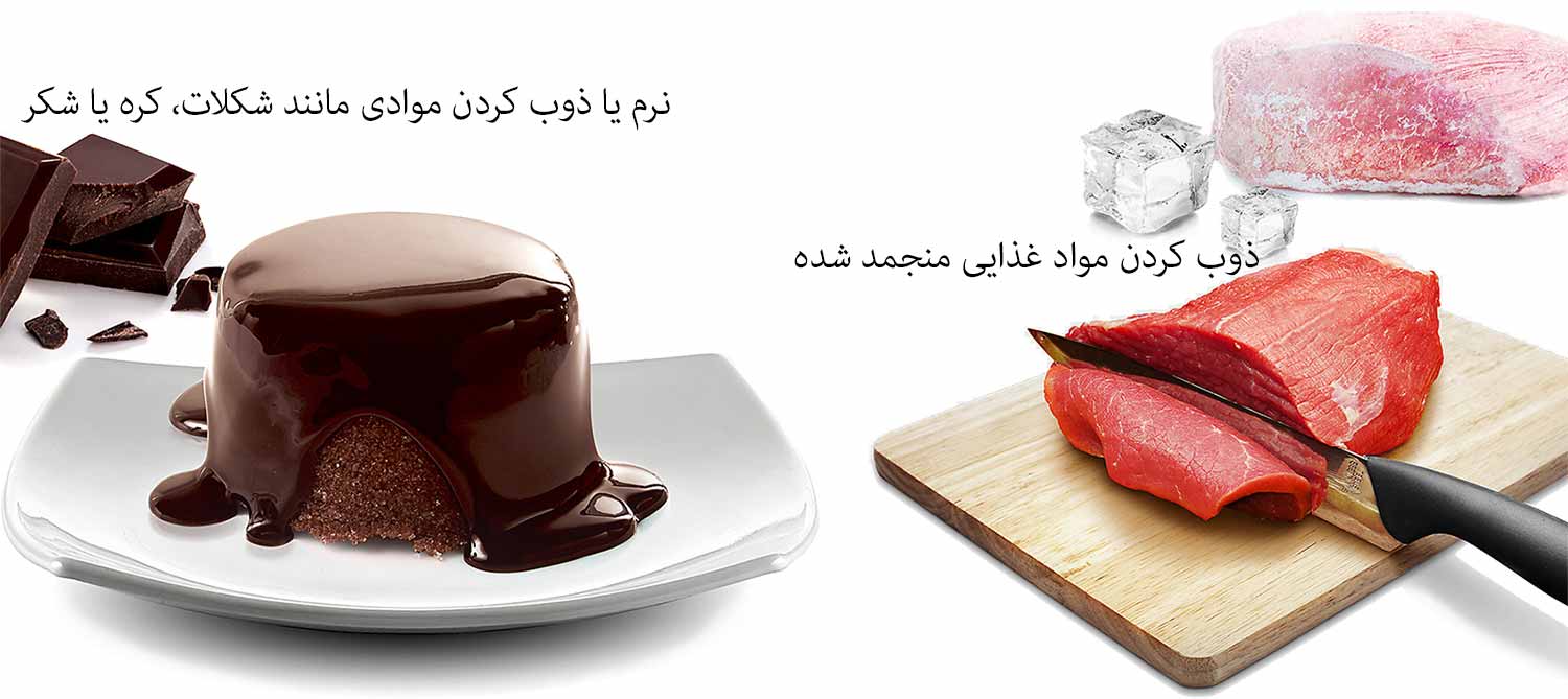 - ذوب کردن مواد غذایی منجمد